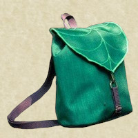 Borsello di pelle lavorata con la parte superiore rappresentante una foglia con tanto di decorazioni in rilievo. L'interno presenta una tasca principale e alcune tasche minori. Si chiude con una cinghia di cuoio sul davanti, ha sia una cinghia lunga per portarla a tracolla sia una striscia di cuoio, sul retro, per infilarla nella cintura o attaccarla alla sella. Può essere usato come portadocumenti. Non è rigido pertanto si può piegare o arrotolare.