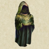 Mantello di fattura elfica. Dotato di cappuccio, lungo fino alle caviglie e abbastanza ampio da avvolgere completamente chi lo indossa. Presenta varie tonalità di verde per confondersi nella vegetazione ed è resistente all'acqua.